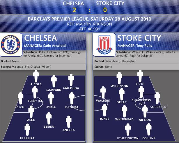 Sist Stoke besökte Stamford Bridge, vann Chelsea matchen med 2-0, och den matchen spelades förra säsongen då Chelsea tränades av Carlo Ancelotti.